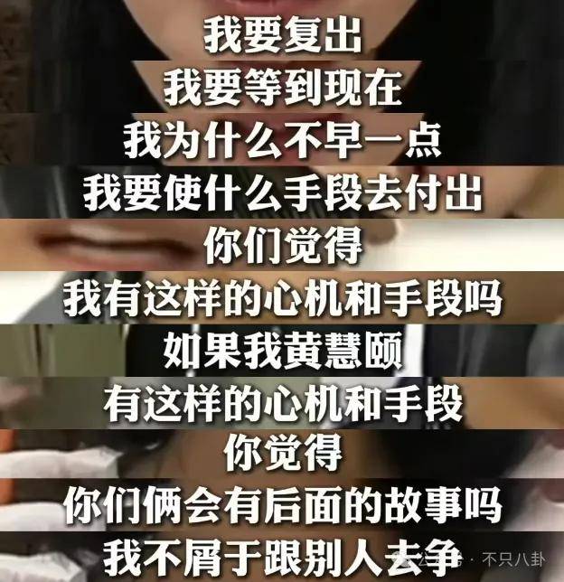 最微妙的是这句话:“如果我黄慧颐有这样的心机和手段,你觉得你们俩会有后面的故事吗?我不屑于跟别人去争!”