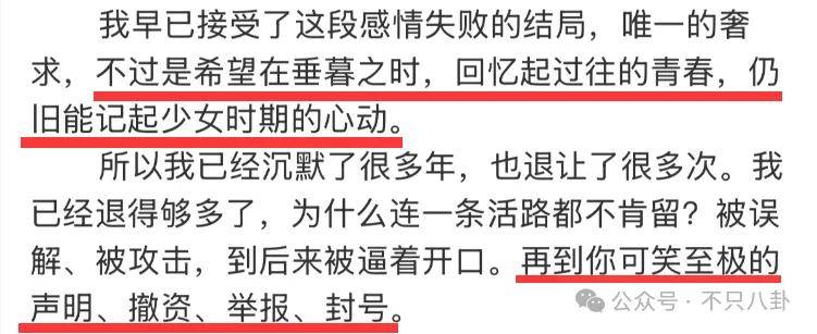 她说自己在这样汹涌的委屈与恨意里,仍然不想毁掉保剑锋的事业,但她也不会就此结束。