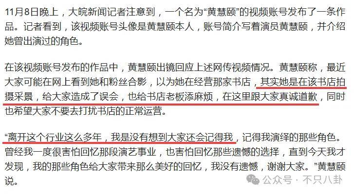 去年底,有网友在某书店偶遇演过女演员黄慧颐,以为她退圈后在经营书店,便发布到网上。