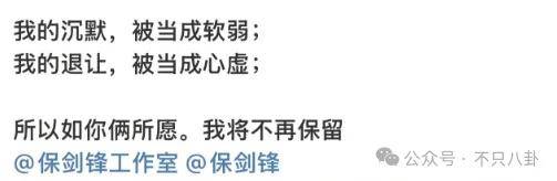 面对出轨、劈腿等言论,保剑锋调侃着回应:我都笑了,高级一点好不好?