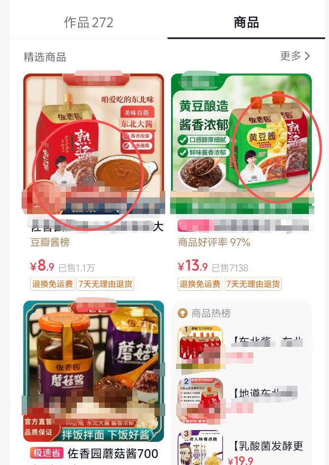 而且品牌目前也没拿出啥实际行动出来,看完它这声明后再点开品牌方主页的店铺,赫然又是一排印有闫学晶大头照的产品,一个链接都没下架,诚意一点看不出。