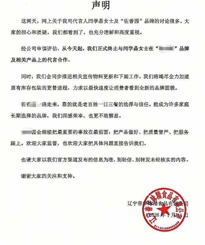 闫学晶代言的品牌最终也顶不住巨大的压力,发声明官宣和她割席。