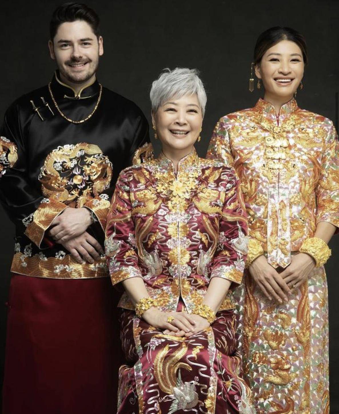 不过金燕玲还是在其他方面补偿了女儿,安排女儿、女婿一起拍摄结婚的全家福合照。合照是在香港拍摄的,女儿、女婿专程从国外回来,金燕玲动用了一些关系,摄影师很便宜,苏施黄又认识一个金店老板,对方提供了很多金饰,一家三口穿上了传统的裙褂,戴上了金饰,美美地拍摄了一组家庭照。金燕玲的女婿是外国人,入乡随俗,也穿上了中式传统的袍子,算是一个纪念。除了中式合照外,也有比较现代款式的家庭合照,总之金燕玲以此弥补了没有参加女儿婚礼的“遗憾”。