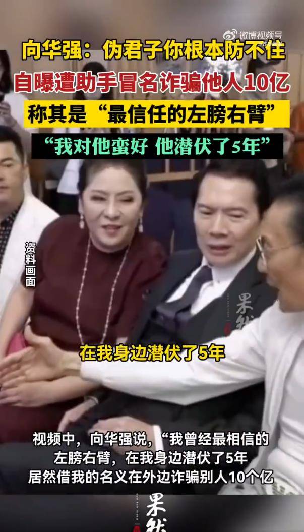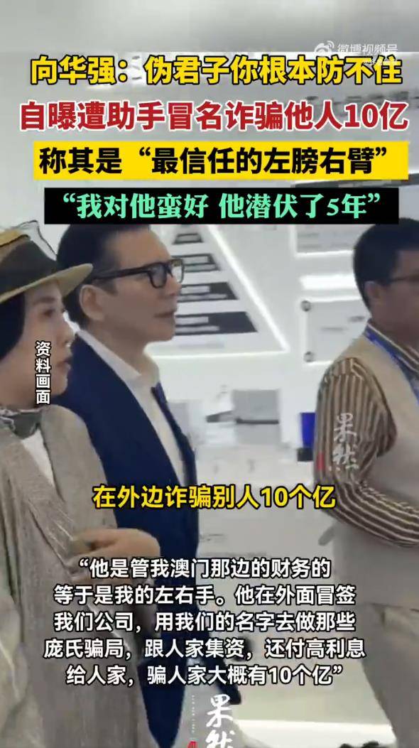 据1月16日报道,近日,向华强在社交平台发布的一则视频,直接让娱乐圈和财经圈同时炸了锅。视频里,这位江湖大佬面色凝重,亲自揭开一道陈年伤疤:他曾最信任的澳门财务助手,竟在身边潜伏五年,用他的名义设下庞氏骗局,诈骗金额高达10亿港元。一句“伪君子的教科书”,道尽了被至信之人背叛的寒意。