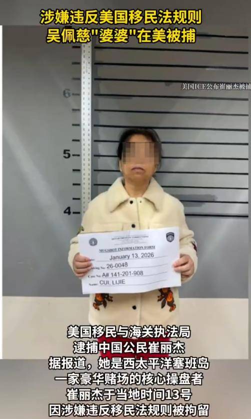 一则逮捕消息,撕开了塞班岛赌场风云与跨境豪门的一角。2026年1月13日,68岁的中国香港籍女子崔丽杰在塞班岛机场被美国移民与海关执法局(ICE)拘留,因涉嫌违反移民法规则,目前关押于当地苏苏佩村惩教监狱。她的另一个身份,是女星吴佩慈伴侣纪晓波的母亲。随着其狱中照片曝光,这个家族深陷的法律泥潭与商业争议再度被推向公众视野。