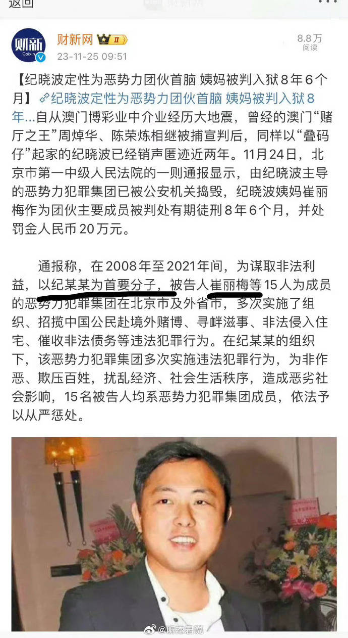 此次逮捕并非该家族首次涉法。2023年,纪晓波已被法院定性为“恶势力团伙首脑”,其姨妈崔丽梅更因组织跨境赌博、催收非法债务等罪名被判刑8年6个月。崔丽杰的被捕,进一步印证了这个以赌场生意为核心的家族所面临的多重法律风险。