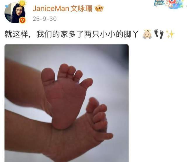 而说到文咏珊的宝宝,官宣时只晒出孩子小脚丫照片的她并未透露性别,不过,有细心的网友注意到她在文案中使用的表情包是小男孩表情,由此猜测,文咏珊生的应该是个儿子。