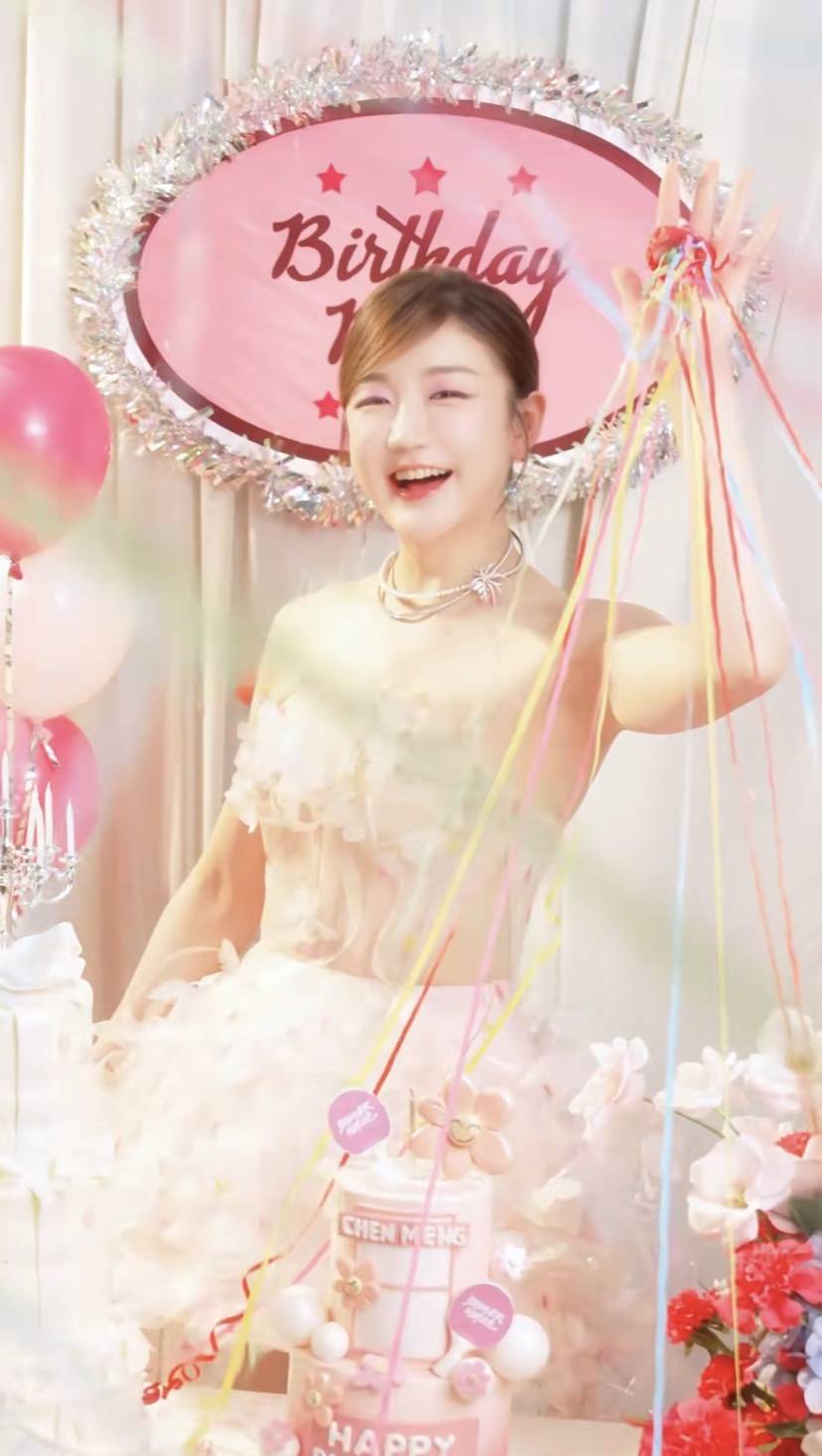这样的陈梦,哪里像是32岁的年纪,说她是23岁的小女生都嫌多。生日场景布置的粉粉嫩嫩的,太有少女心了。