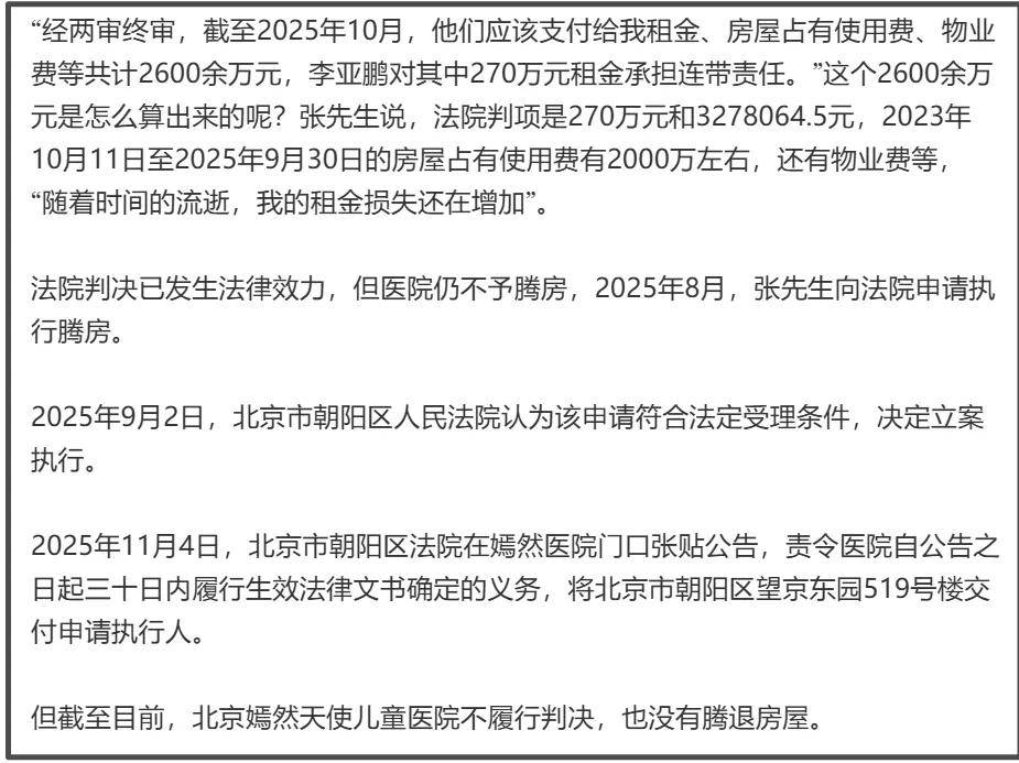 早在2025年11月,法院就责令医院三十日内把履行判决,把房屋还给房东,结果医院一拖再拖,房东接受媒体采访的时候表示,截止到2026年1月,他还没有收到房屋。