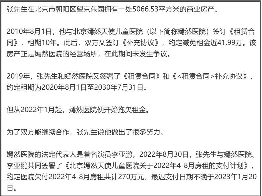 要知道房东和嫣然天使儿童医院的官司都打了两年多了,一直打到了中级法院,嫣然医院两次审理都败诉了。