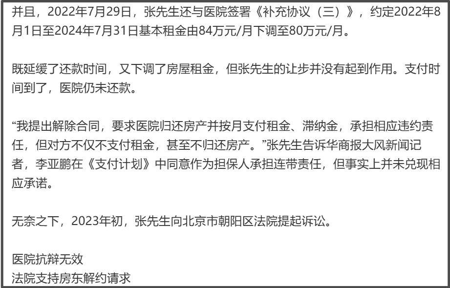 李亚鹏承认自己的情怀大于能力,嫣然医院不光拖欠了房租,还背负了其他债务,医院理事拿出了千万个人资金借给医院,光外界了解到的,就有至少三千万的资金缺口。