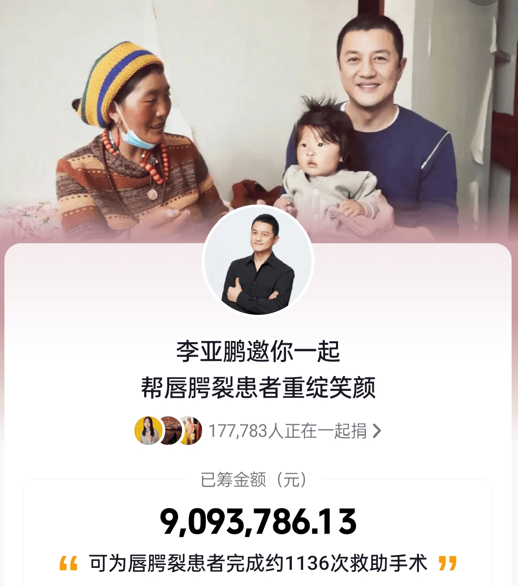 得知李亚鹏经济遇到困难后,许多网友通过各种渠道捐款,有的直接捐给了嫣然天使基金,有的通过李亚鹏社媒链接捐款,还有一些热心网友迟迟找不到捐款通道,急得到处询问。那么,李亚鹏目前募捐了多少钱呢?由于其他捐款渠道并没有实时汇总,所以暂时只总结单平台的捐款数额。