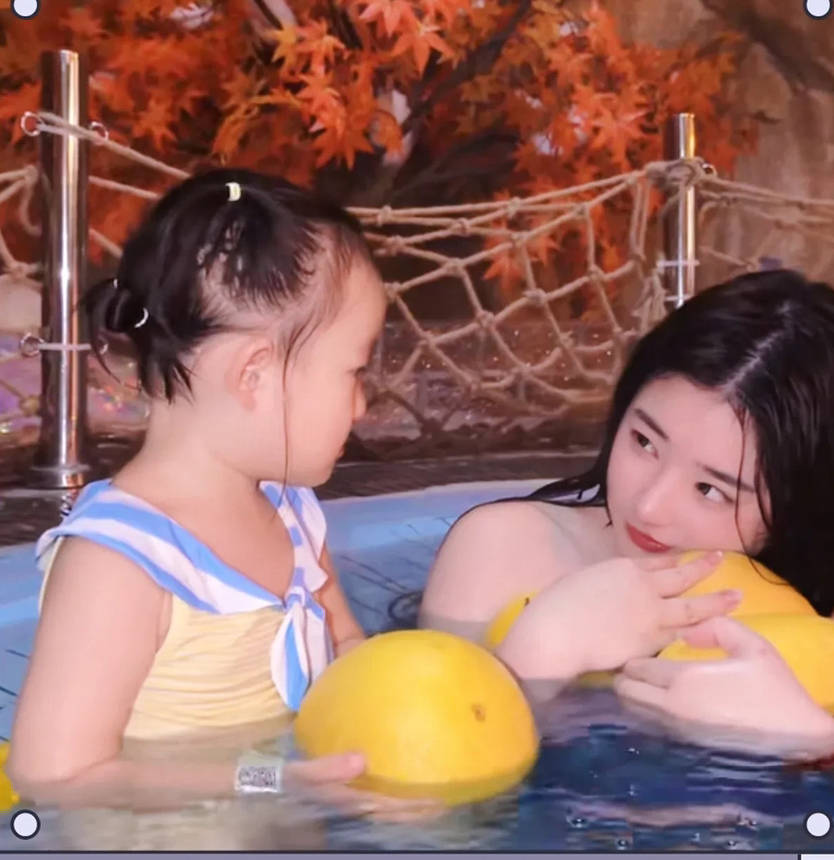 黄一鸣这边也没消停,她带着女儿闪闪泡温泉,母女俩过得自由自在。