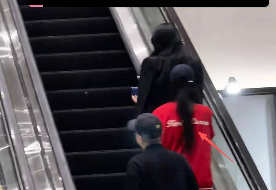 紧随身后的是王诗龄,穿了一套大红色休闲套装,戴了蓝色棒球帽,头发长度及腰。对比王诗龄的日常照片,头发长度及发质基本一致。