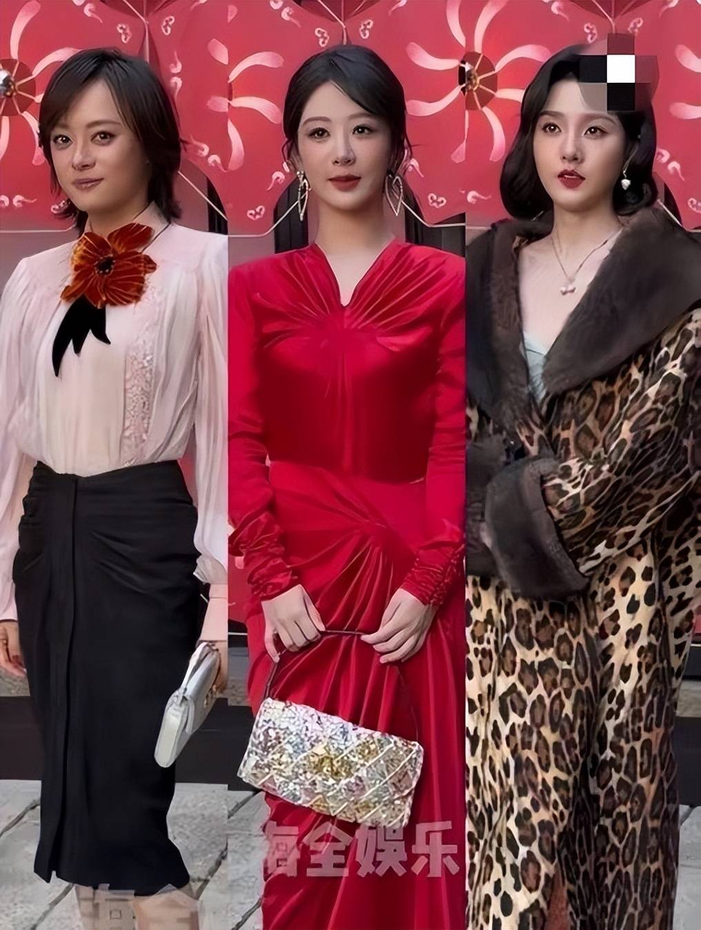 临近新年活动主题比较偏中式风,大家都穿了很喜庆的衣服。徐帆一件红色短上衣配高腰阔腿裤,倒是利落飒美。