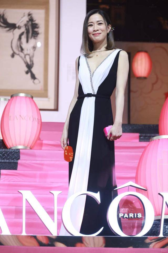 50岁Man姐一出场,经典黑白撞色长裙垂落下来,细带束腰设计把身材窈窕全勾勒出来,深V领口性感又不俗气,优雅中混着新春嫣红,现场直拍美哭人。