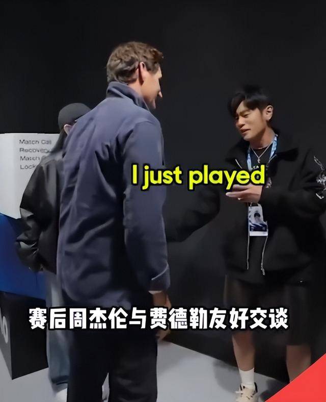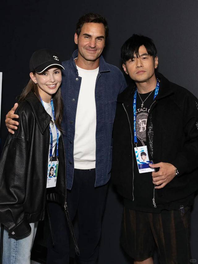 更绝的是第二天,周杰伦和昆凌一起去看比赛,在后台碰到了网球传奇费德勒。