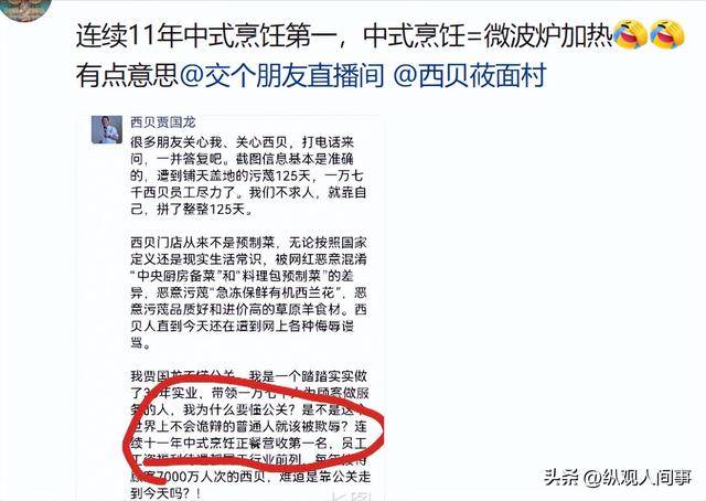 只是面对罗永浩的公开质疑,贾国龙当时的回应堪称强硬,9月11日他手持罗永浩消费小票对着镜头宣称西贝“门店里没有一道是预制菜”,还放出狠话要起诉罗永浩损害品牌商誉。