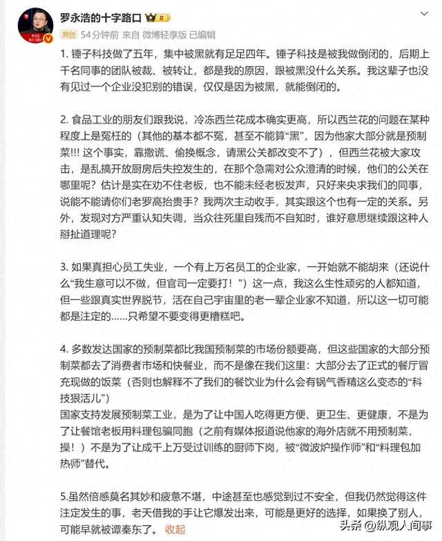 而罗永浩也很快给出回应,在长文中直言企业倒闭的根本原因是自身经营问题,和舆论批评毫无关系,还拿自己当年锤子科技倒闭的经历举例,暗讽贾国龙这是在找替罪羊甩锅。