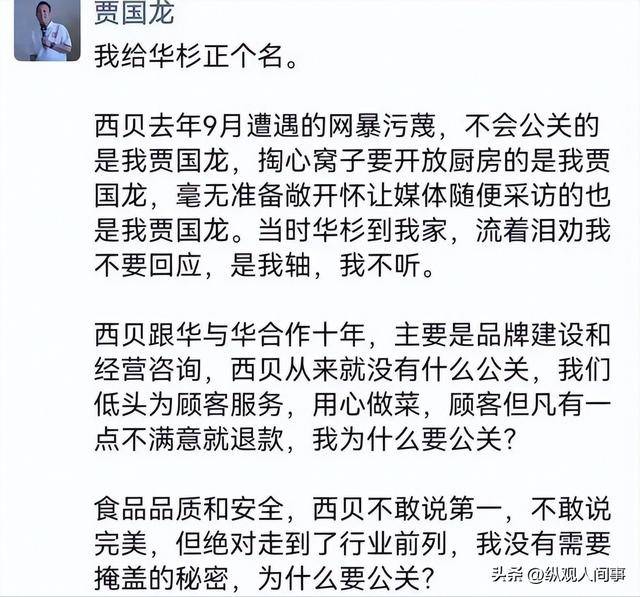 2026年1月16日上午,西贝莜面村创始人贾国龙的一条微博直接冲上热搜榜前列。