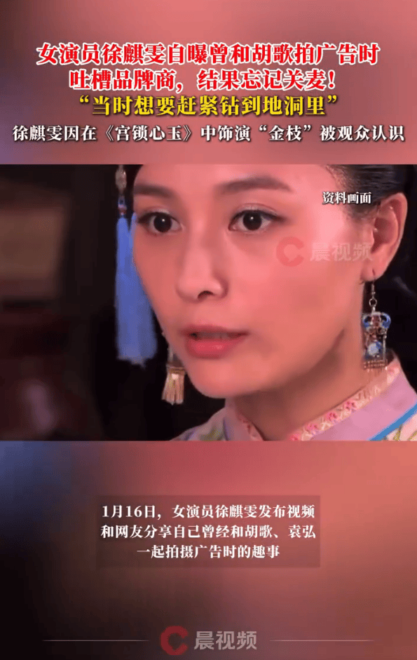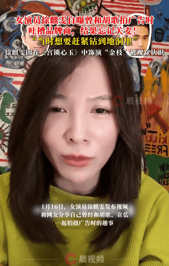 1月16日,女演员徐麒雯发布视频和网友分享自己曾经和胡歌、袁弘一起拍摄广告时的趣事。她透露自己曾经拍摄汽车广告时,和胡歌在车里吐槽品牌商,结果两个人没有关麦克风,现场工作人员全听见了。