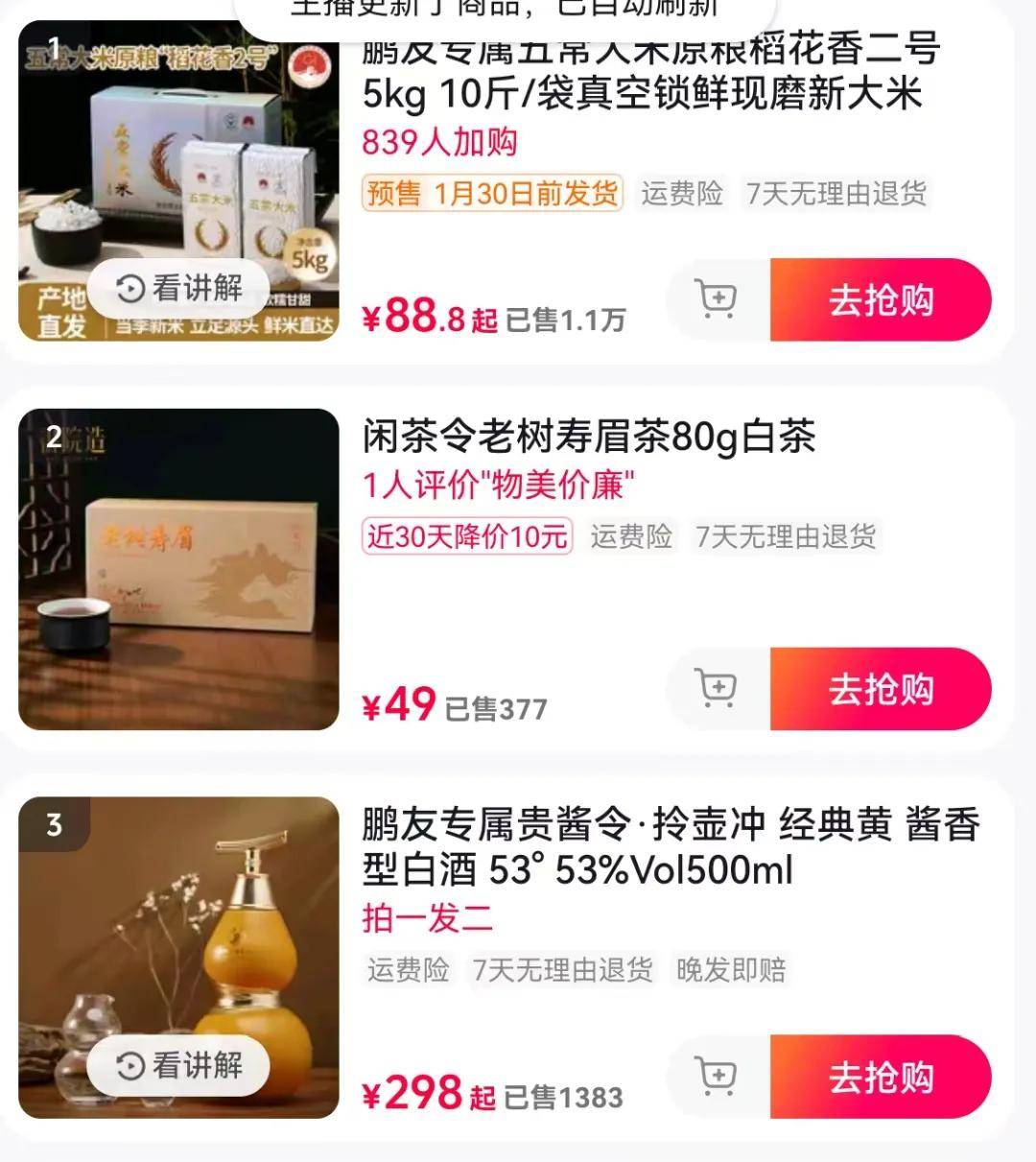 究其原因还是李亚鹏压根没有掌握受众心理,依旧我行我素。在房租欠债风波爆发后,大量网友建议上架售卖日常用品,李亚鹏也只是附和表示感谢,并没有调整选品。从售卖的排行榜来看,当晚的第一名是大米,卖了一万多件,其次是茶和酒,也只有几百上千件。而直播间推流的产品也都还是茶叶相关的产品,说明整个团队都不够敏捷。
