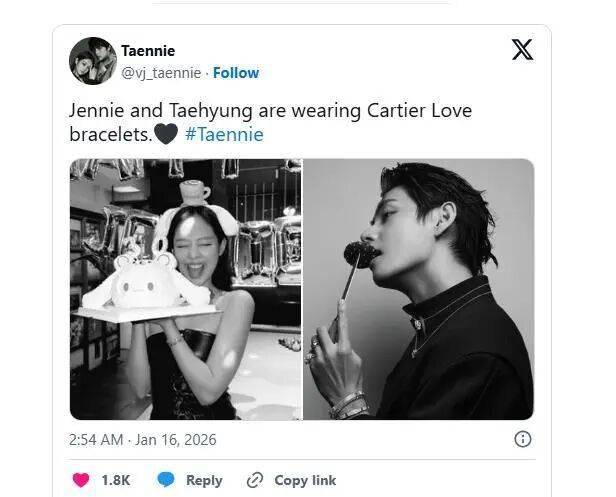 BLACKPINK成员Jennie近日在社交平台发布庆祝生日的TikTok视频,却意外引发新一轮关于她与防弹少年团成员V是否仍在交往的猜测漩涡。焦点聚集在她手腕上那枚精致的卡地亚“Love Bracelet”手镯上——眼尖的网友迅速发现,V在近期曝光的照片中,竟佩戴着同款设计。