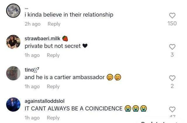 此次手镯事件中,支持“恋情说”的网友在评论区密集发言:“巧合发生的频率已经高到无法用‘偶然’解释。”相关对比图片和推测帖在X平台快速传播,获得数万点赞转发,不少粉丝坚信这已是“半公开的秘密”。