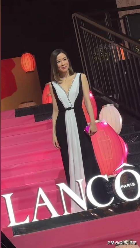 50岁的佘诗曼,很钟情黑白拼接的裙子。