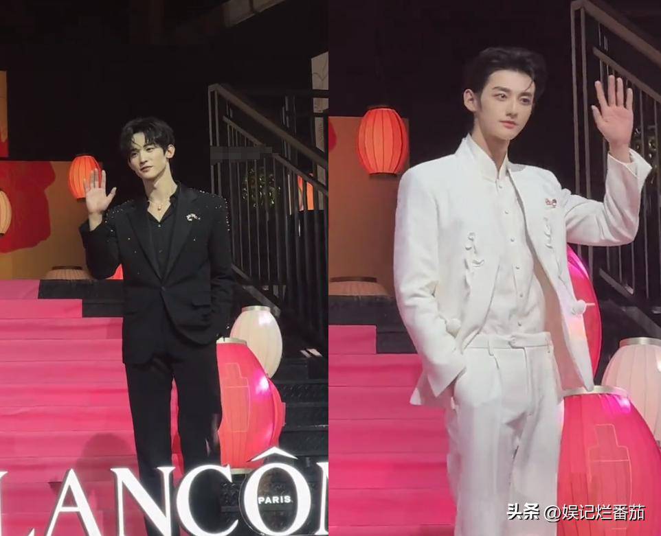 本次活动,还是黑白拼接的裙子,从前后换成了左右,胸口还增加了银色闪亮的钻石。