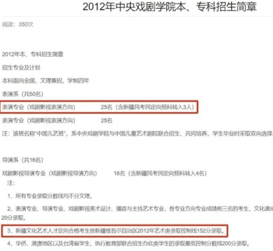 不过,中戏方面很快对相关舆论进行了澄清,称2012年未招收新疆班。