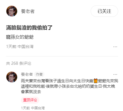 郭碧婷爸爸也算是半个娱圈的人了,因为向太一句话让他觉得女儿受了不少委屈,所以社交平台的更新频率非常高,每次还会置顶大家想问的问题,不然粉丝起争论。