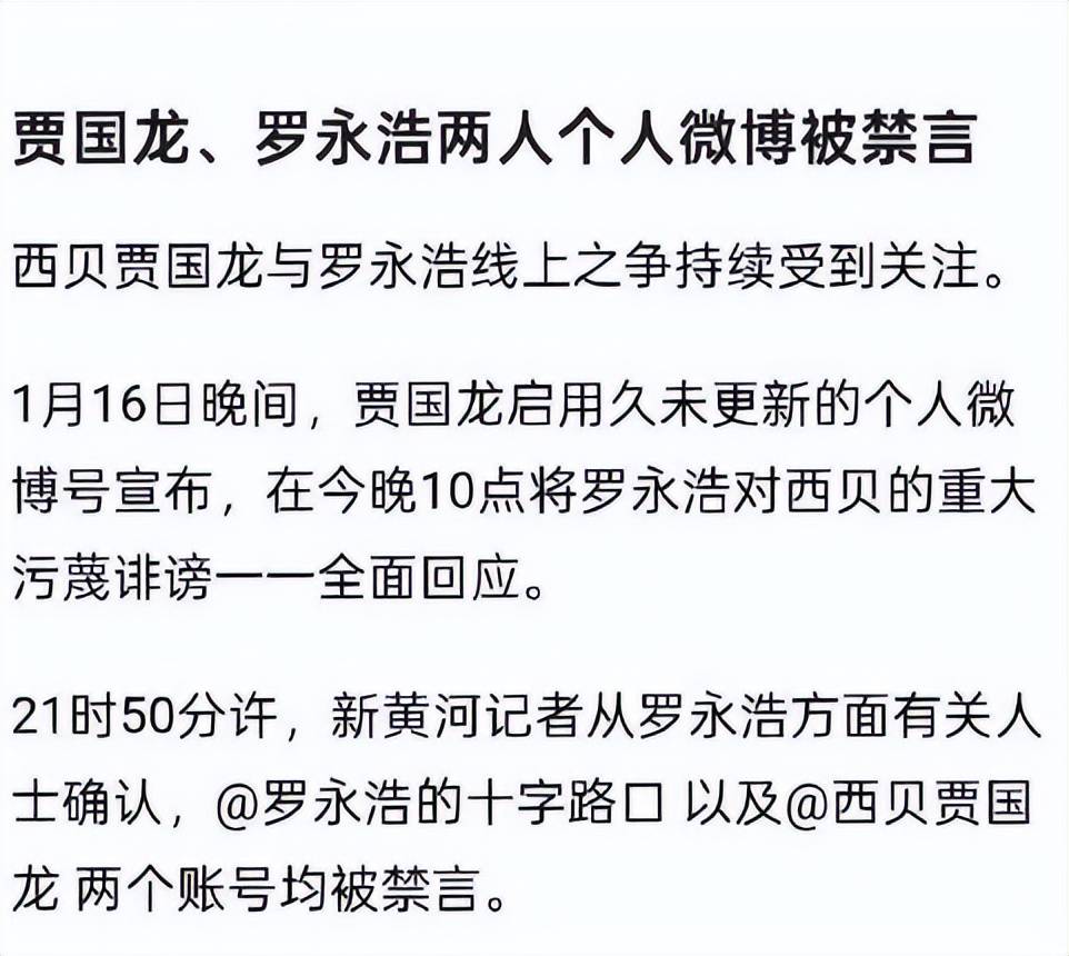 2026年1月16日,西贝餐饮创始人贾国龙预告当晚10点将全面回应罗永浩对其"污蔑诽谤",但双方微博账号在回应前突遭禁言,为持续四个月的"预制菜之争"增添戏剧性转折。
