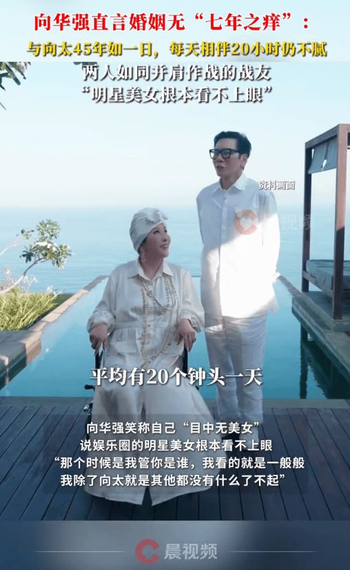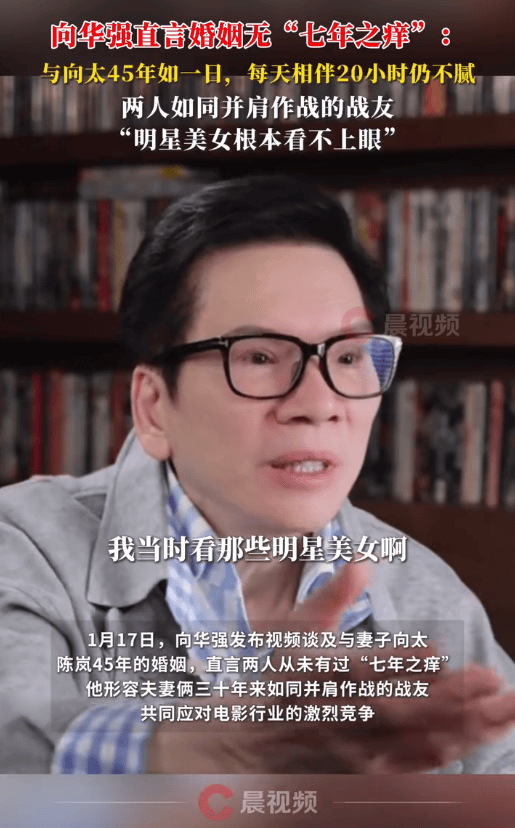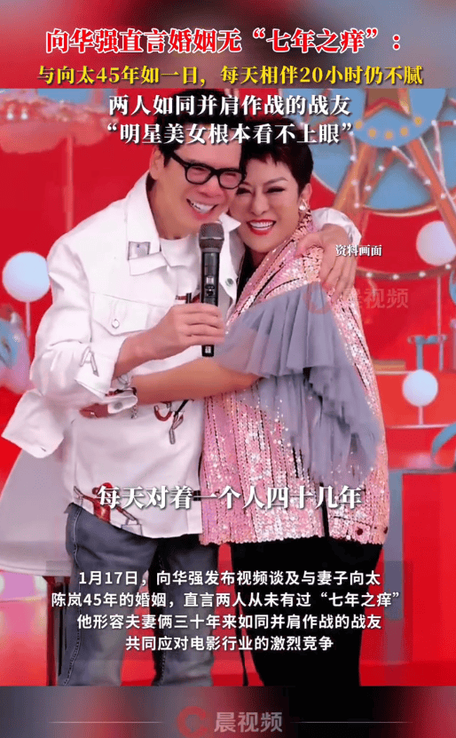 (来源:潇湘晨报)1月17日,向华强发布视频谈及与妻子向太陈岚45年的婚姻,直言两人从未有过“七年之痒”,他形容夫妻俩三十年来如同并肩作战的战友,共同应对电影行业的激烈