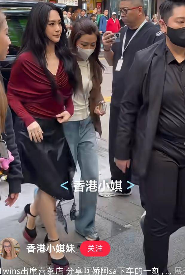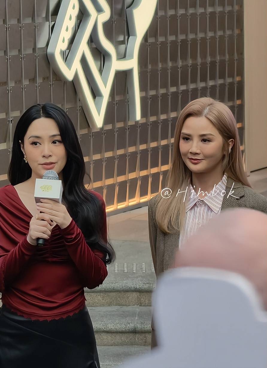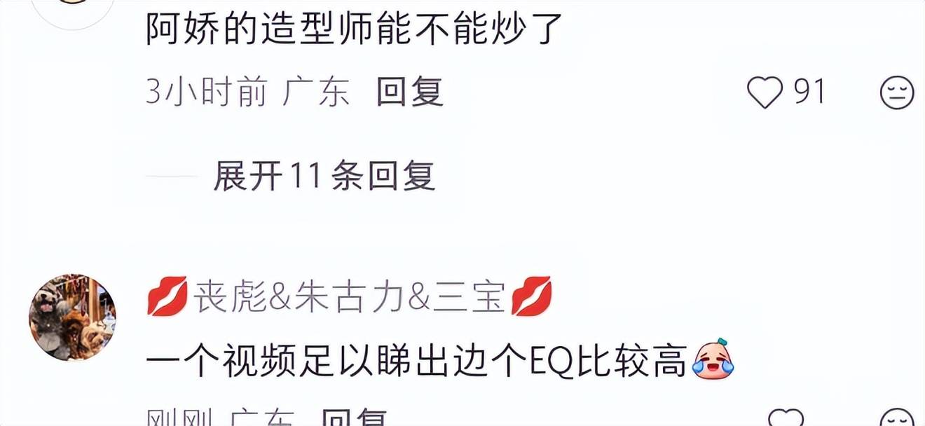 单纯只是脸圆,还不会给人这种突兀感,她的眼皮也略显松弛,眼角和鼻基底都出现了多层细纹,和阿娇站在一起,能看出明显的年龄差。
