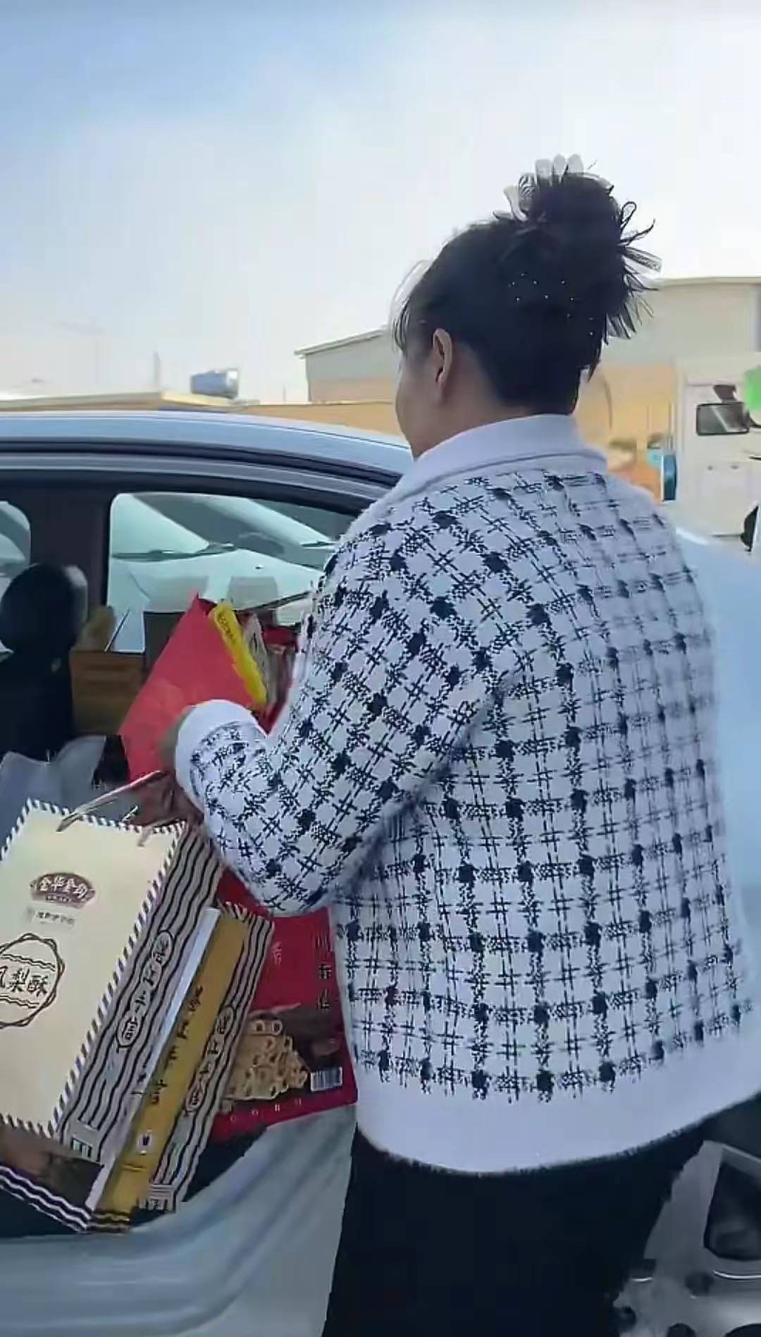 全红婵妈妈也是毫不吝啬,大包小包的礼品就往小轿车上塞,回娘家的心情是那么轻松愉悦。