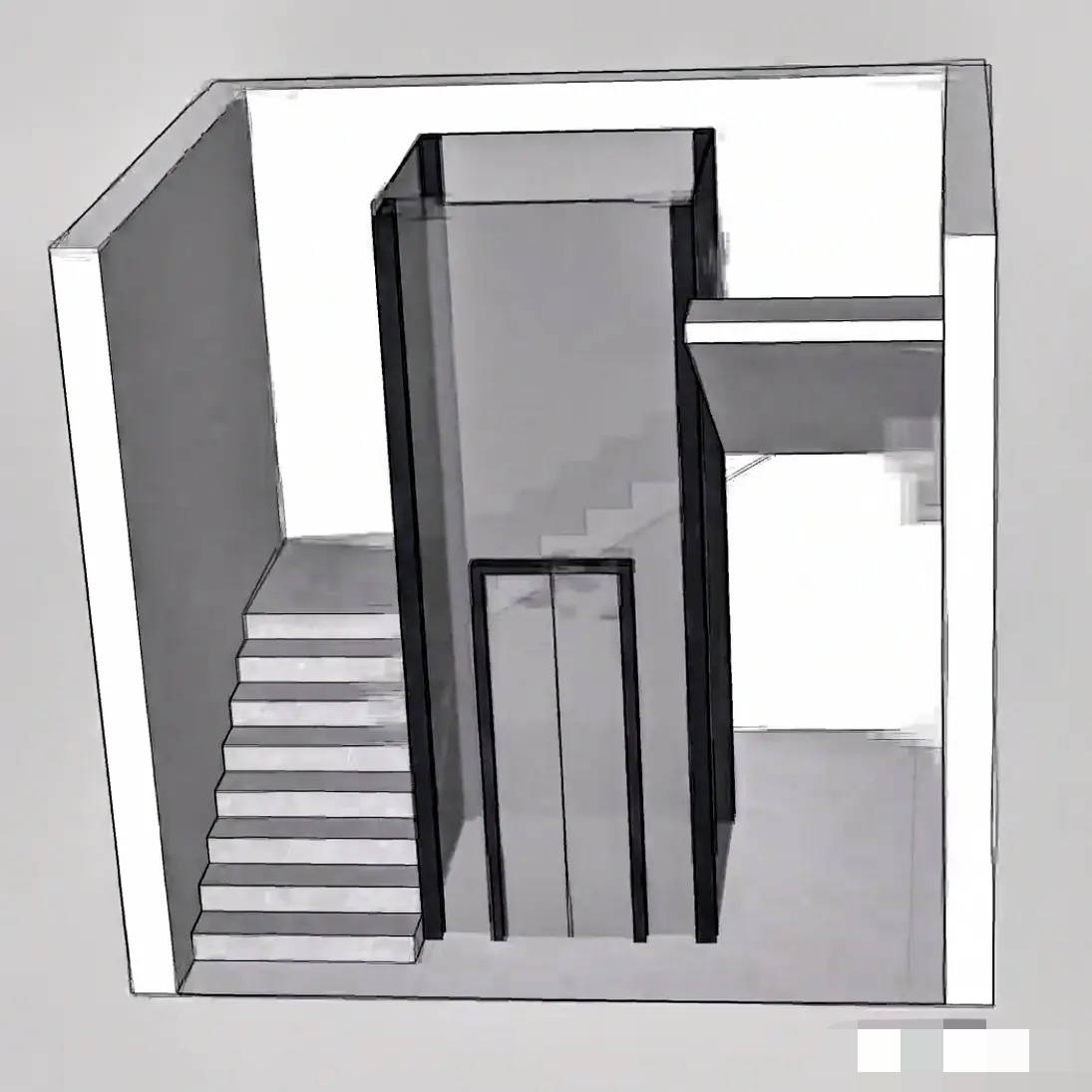 设计师决定大门不和大伯家一起,从另外的方向开。且电梯的设计非常特别,就在一个边缘的位置。