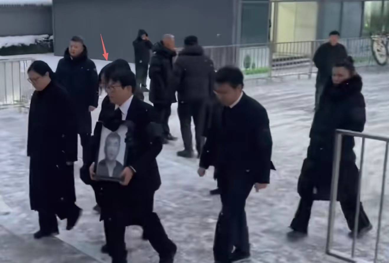 聂卫平的三个子女都到了,长子孔令文手捧遗像,次子聂云青站在一侧,另一侧是小女儿聂云菲。