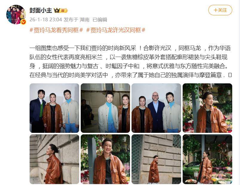 除了秀场内的气场全开,贾玲在米兰街头与花市的路透照也广受好评,焦糖棕皮衣造型被时尚评论解析为“巧妙融合了意式优雅与东方随性”,电影氛围感十足。