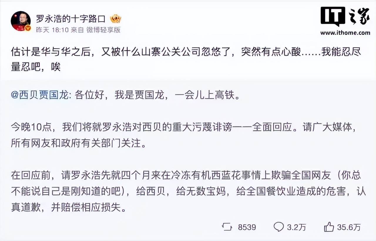此次亮相,距离那场席卷社交平台的“西贝风波”仅数日之隔。1月15日,西贝餐饮董事长贾国龙确认将一次性关闭全国102家门店。次日,罗永浩发布长文,以自身创办锤子科技的经历为例犀利回应,称企业倒闭主因在于自身经营,直言“没见过一个企业仅仅是因为被黑就能倒闭的”。贾国龙随即预告当晚将全面回应,罗永浩则转发暗示其可能被“山寨公关公司忽悠”。然而,这场预期的公开对峙最终以双方相关微博账号均被禁言而戛然收场。1月17日,罗永浩在朋友圈发文,将微博禁言15天“善意解读成是对我的保护”,并称个人不再回应,未来若有谣言将由公司以“四平八稳”的公关稿澄清。