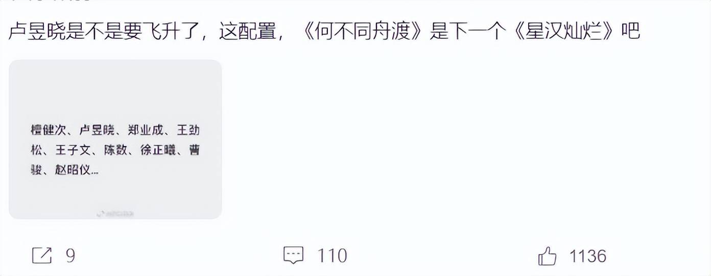 看到《何不同舟渡》的简介和网传的阵容后,很多网友都认为,这部剧有望成为下一部剧《星汉灿烂》。