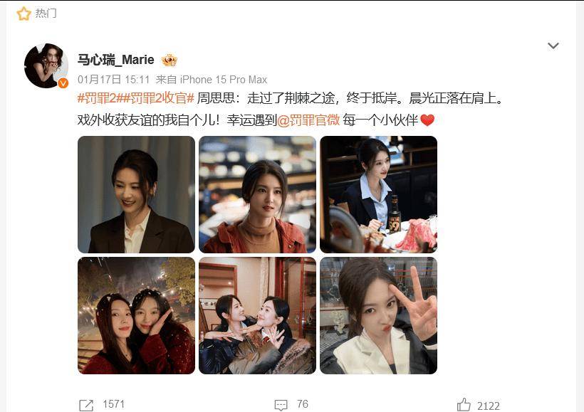 马心瑞告别周思思,周思思:走过了荆棘之途,终于抵岸。晨光正落在肩上。她还说戏外收获友谊的是自个儿!幸运遇到《罚罪2》每一个小伙伴。