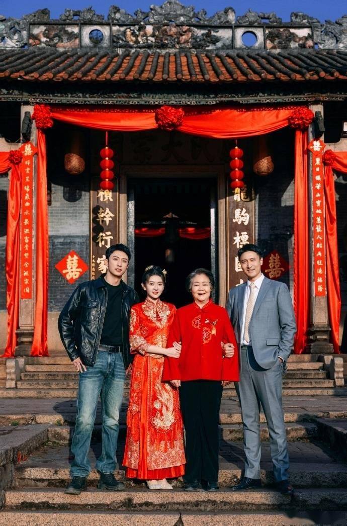 梁洁在剧中饰演文江燕,她发了九宫格的龙湾合照,有跟文妈,跟两个哥哥的,还有偷拍的,还有走戏的。