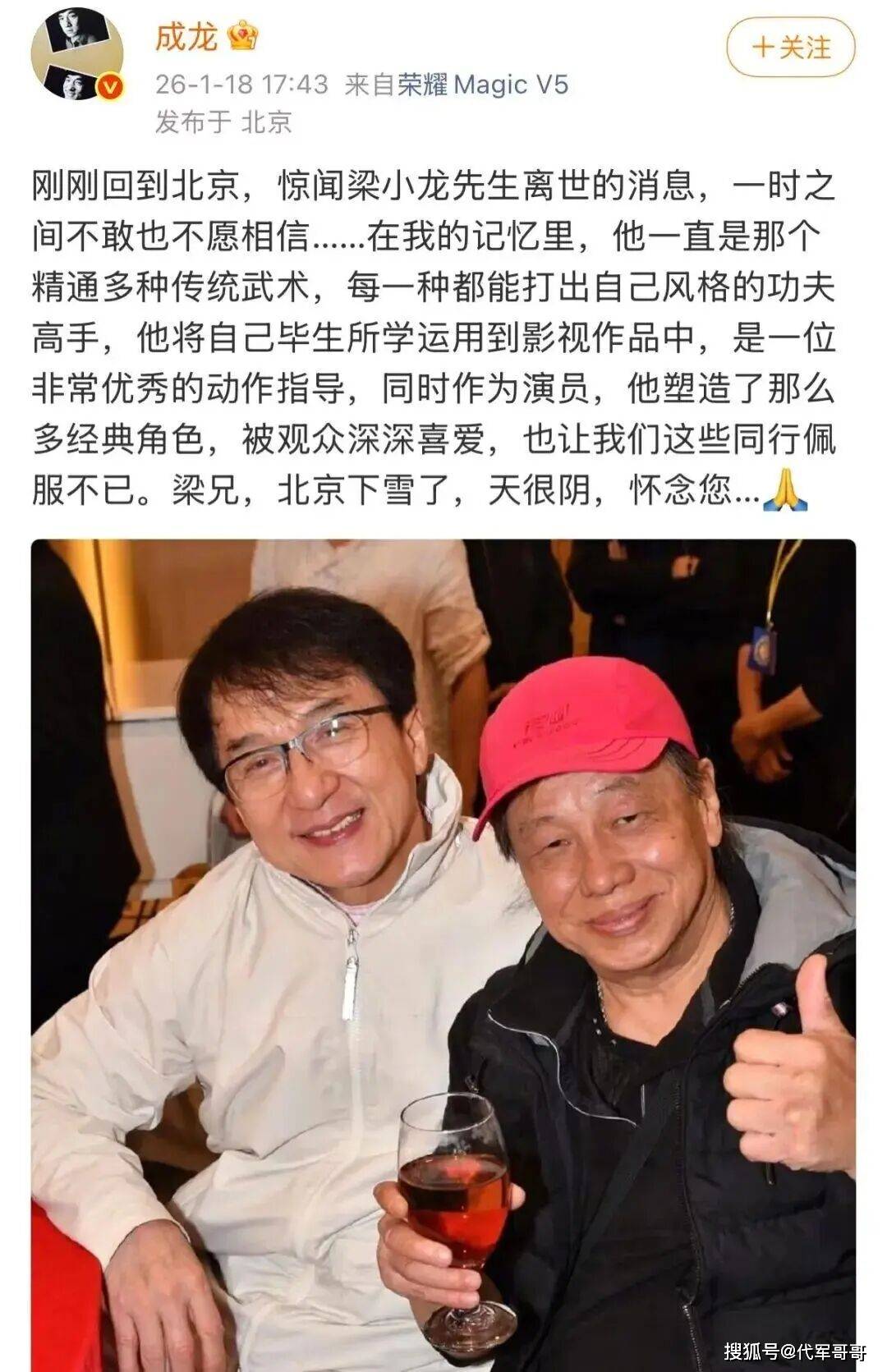 导演李力持也发文“永远怀念梁小龙师傅,依依不舍”,字字句句皆是江湖情谊。