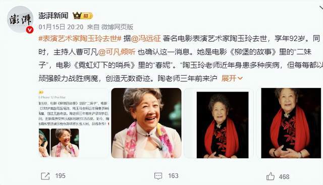 昨天(18号),送别了“棋圣”聂卫平,今天(19号)再度送别人民艺术家陶玉玲,她的去世同样令人感到惋惜和难过,世间再无“二妹子”。1月19号,陶玉玲的追悼会在八宝山