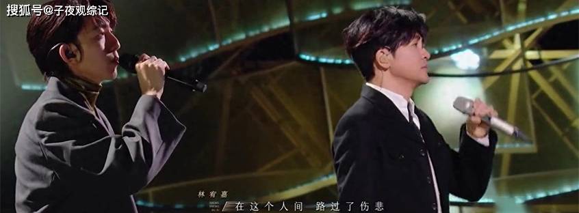 从和声切入到主唱段落,非常地内敛,站位设计还是一高一低,营造出一种疏远感,有观众形容他的声音像口风琴,直直地就往人心里钻。