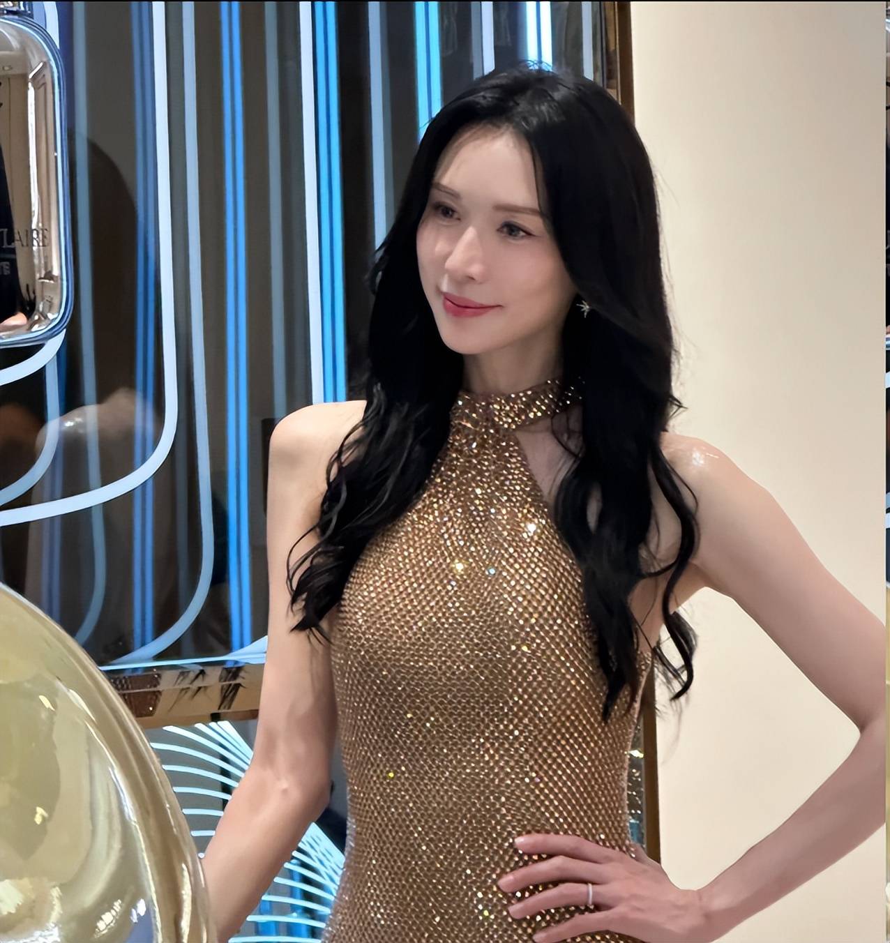 就在今天林志玲出席线下发布会,穿着一身鎏金挂脖修身长裙,看着华丽实则透着刻意。