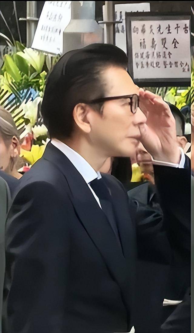 他穿着一身纯黑的素服,胸前别着白色的孝花,最引人注目的是腰间绑着的粗麻布孝带,这是传统丧礼中至亲才会穿戴的服饰。