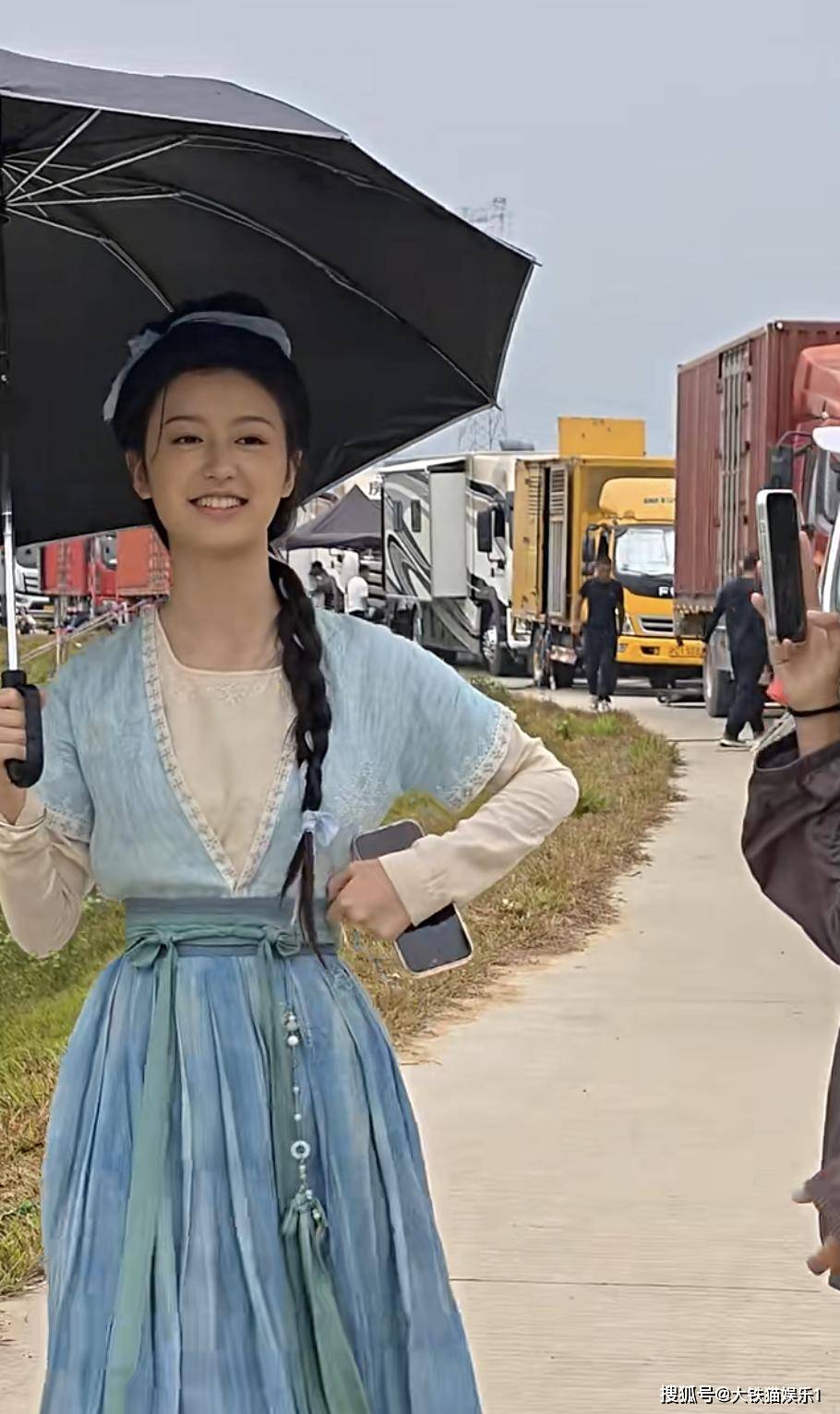 拍戏时路透,有点发腮的迹象,五官还是那个五官,脸圆了一圈,突然就没有那么灵动了,看起来变得敦厚了不少。