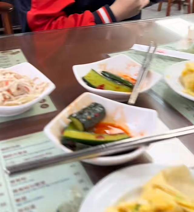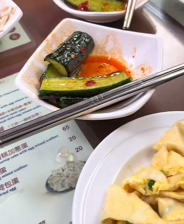 另外,细心的网友不难发现,台湾省当地的餐食真的好贵,一份荷包蛋的价格就要高达20台币,算下来也得五块。桌面上摆放的一些东西也是比较简单,有豆腐丝、拍黄瓜,一份水煎饼,还有没上的汤包,整体下来足足有200多元,实在是让人感到价格高昂。
